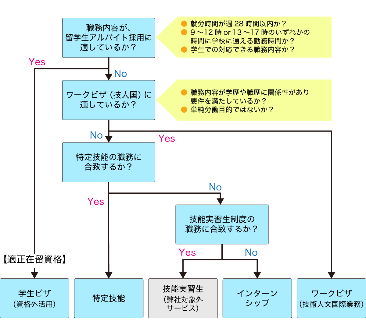 ● ワークビザ(技人国) > 特定技能 > 学生アルバイト > 技能実習生